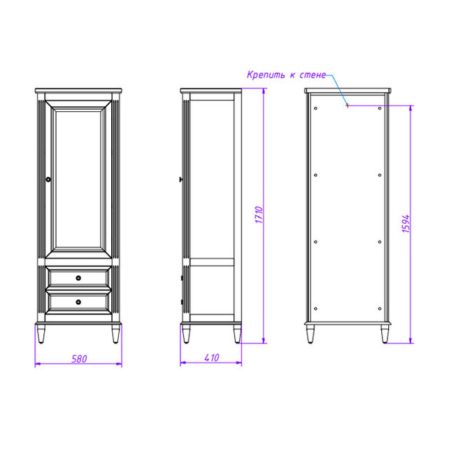 Шкаф-пенал Caprigo Albion 58х171 см массив 10355 L/R цвета разные