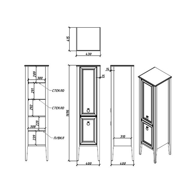 | Система хранения | 2 дверцы/ 2 полки стекло, 1 полка ЛДСП |