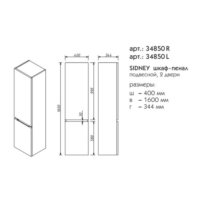 Шкаф-пенал Caprigo Sydney 40х160см 34850 L/R эмаль цвета разные