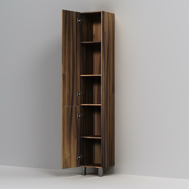 - пять полочек в шкафу-пенале оптимизируют пространство для хранения ванных принадлежностей и моющих средств.
