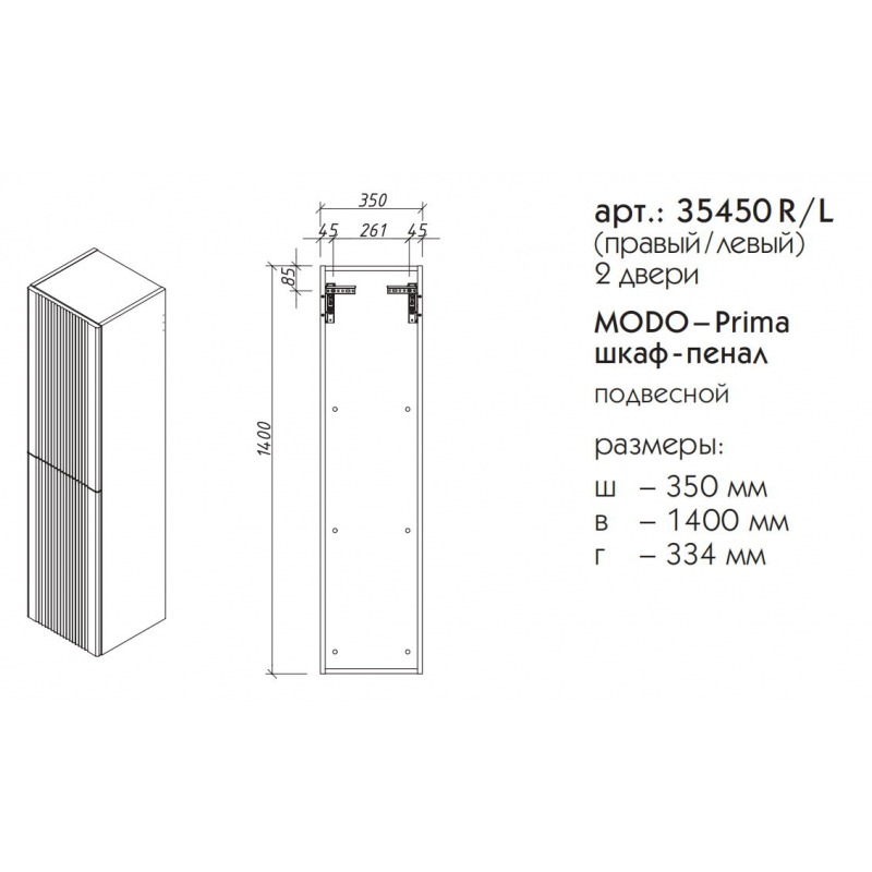 Шкаф-пенал подвесной Caprigo MODO–Prima 35х140 см 35450 L/R цвета разные