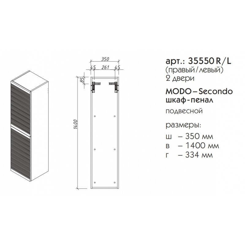 Шкаф-пенал подвесной Caprigo MODO–Secondo 35х140 см 35550 L/R цвета разные