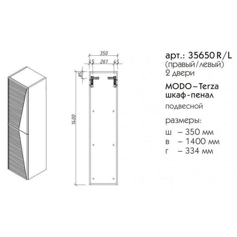 Шкаф-пенал подвесной Caprigo MODO–Terza 35х140 см 35650 R/L цвета разные