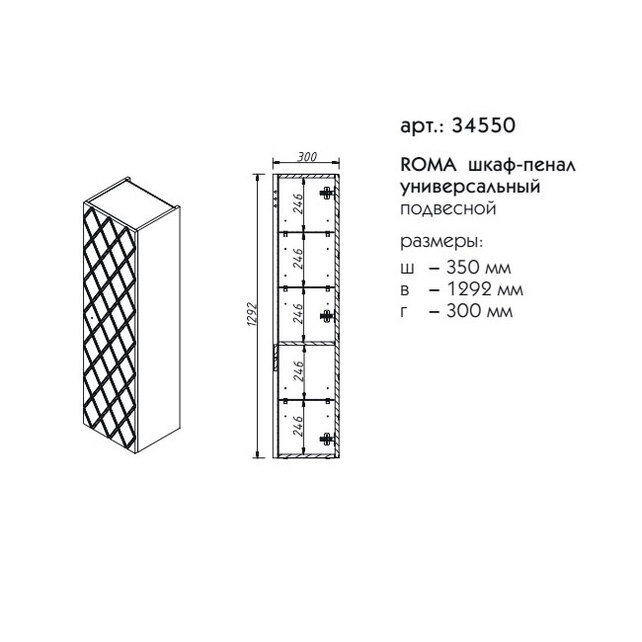 Шкаф-пенал подвесной Caprigo Roma 35х130 см 34550 цвета разные