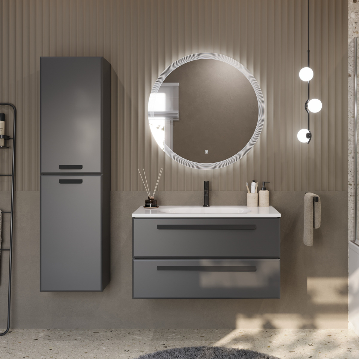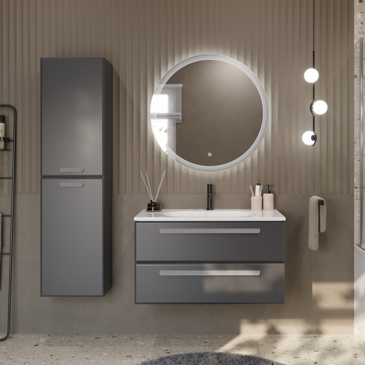 Шкаф подвесной Cezares ECO 40х150 см Grafito/ ручки разные ECO-1500-2A-SC-GR-P