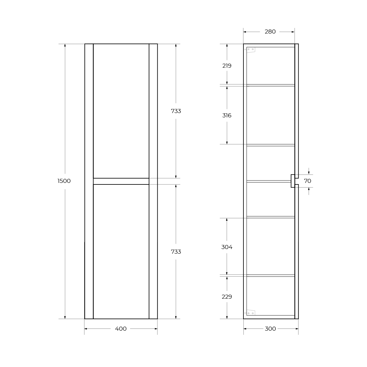 - Шкаф подвесной Cezares Relax 40х150 см браш золото RELAX-1500-2A-SO-BORO-P