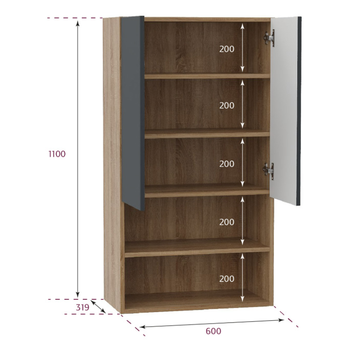 | Система хранения | 2 дверцы, 4 полки ЛДСП съемные |