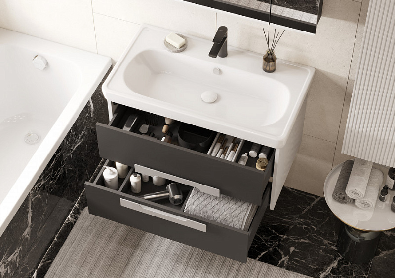 Тумба с раковиной Aquaton Ар-Деко 85 см серый кобальт 1A2804K1DD8D0