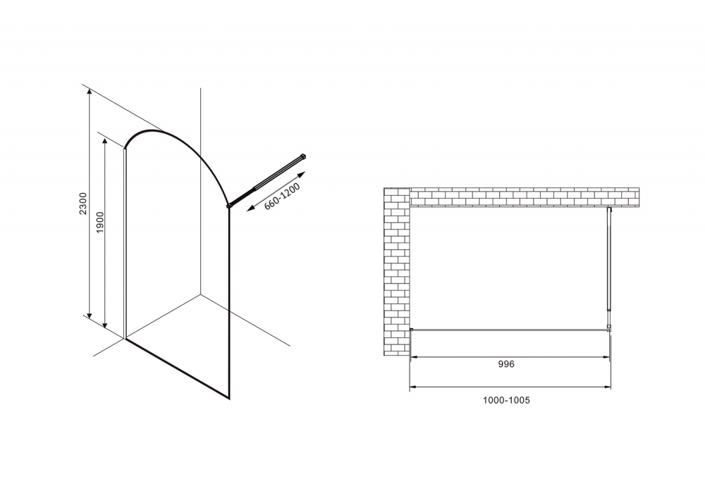 Душевая перегородка Abber Immer Offen 100х230 см черный/прозрачное AG64100BN8