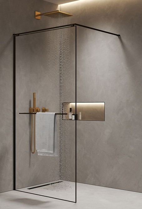 Душевая перегородка AQUAme (100х200) черный мат/прозрачное AQM3720-2-10