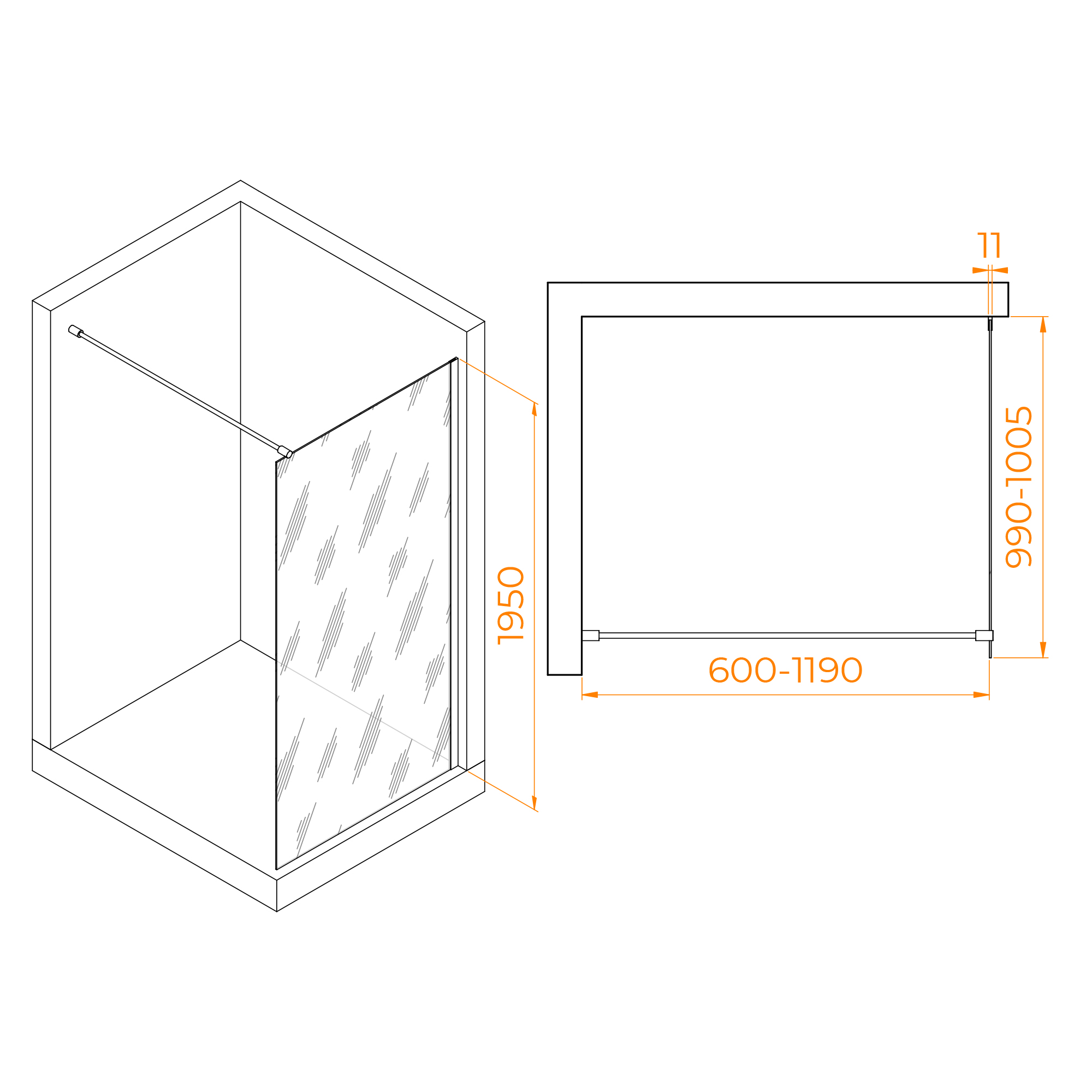 Высота перегородки составляет 195см, что обеспечивает достаточное пространство для комфортного использования душа. Конструкция имеет 3 класс герметичности, что обеспечивает защиту от протекания воды и сохраняет сухую и безопасную зону для душа.