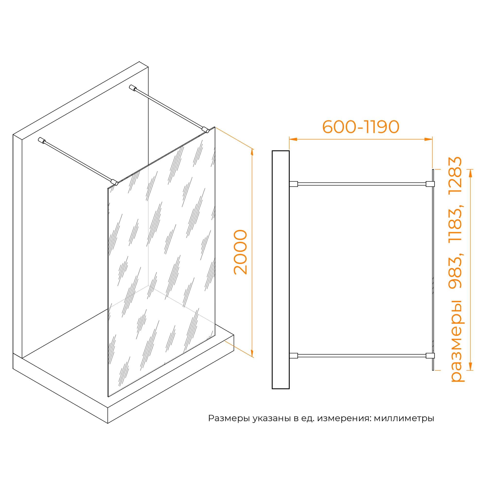 Душевая перегородка RGW Walk In WA-017B 100x200 см черный/прозрачное принт 35101710-84