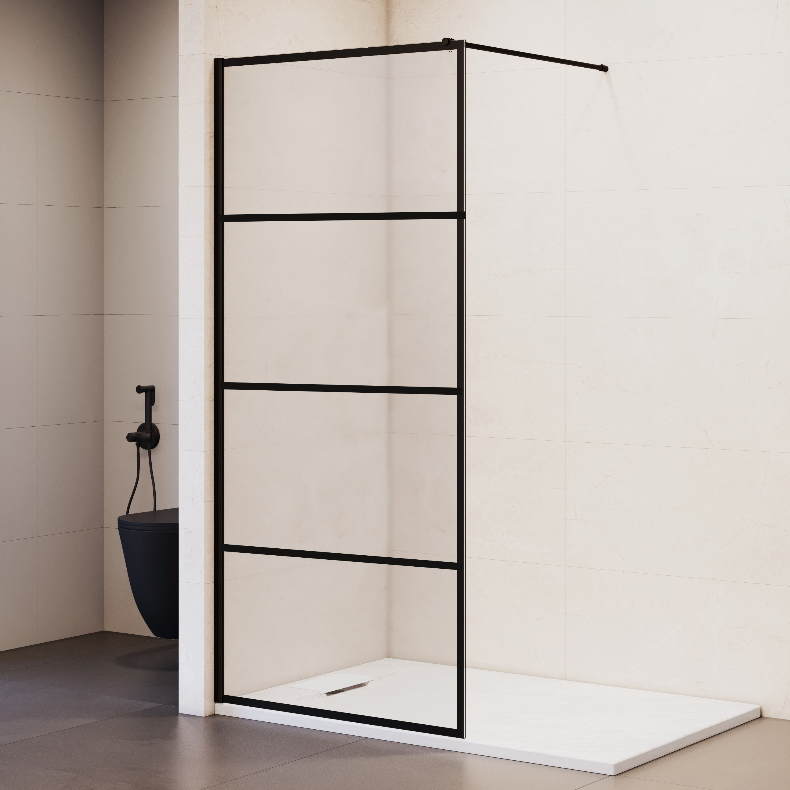 Перегородка оснащена прозрачным закаленным стеклом толщиной 8 мм, которое не только визуально расширяет пространство, но и придает современный и элегантный вид. Благодаря своей прочности, закаленное стекло обеспечивает высокий уровень безопасности и долговечности, что делает перегородку идеальным выбором для использования в ванной комнате.