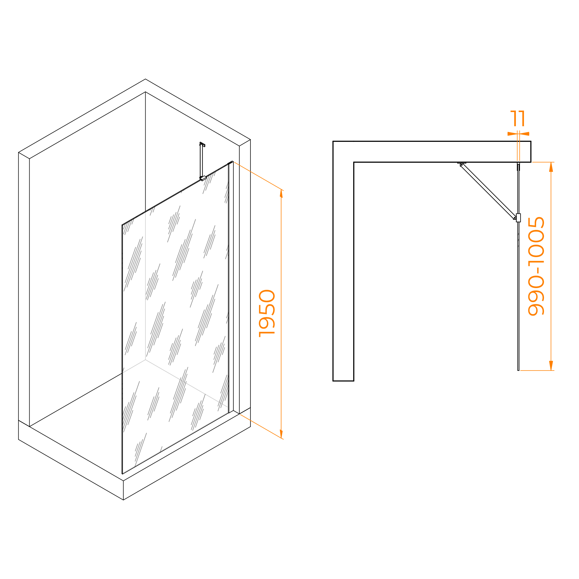 Профиль имеет цвет хром, что придает перегородке для душа современный и элегантный вид. Высота перегородки составляет 195 см, что обеспечивает комфортное использование для большинства пользователей.