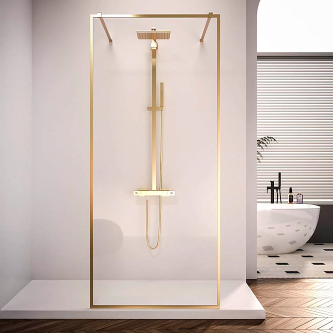Душевая перегородка Veconi Korato KR-90G 100х200 см золото браш/ прозрачное KR90G-100-01-C4