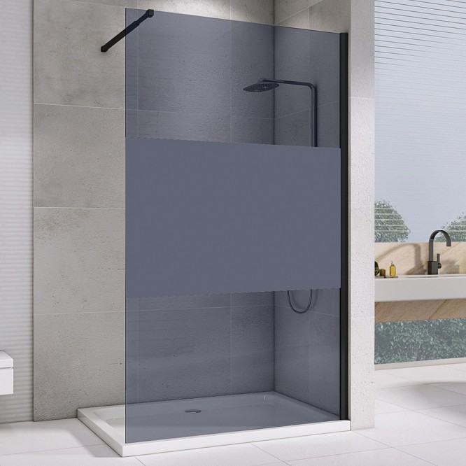 Душевая перегородка Abber Immer Offen 120х200 см черный/прозрачное с тонированной полосой AG69120BT