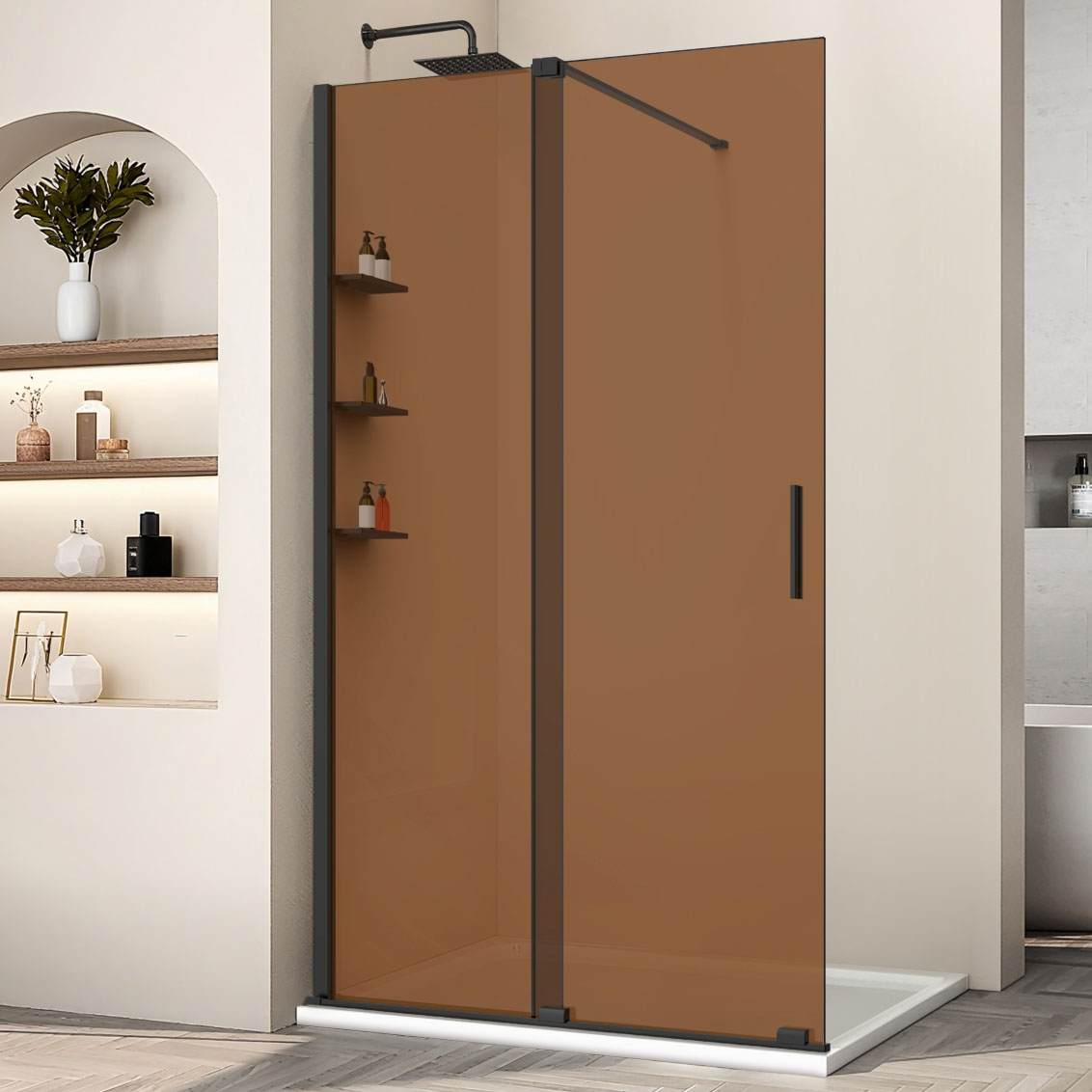 Душевая перегородка раздвижная с полками Vincea Walk-In HR 120 см черный/янтарь VSW-1WSL120GSB