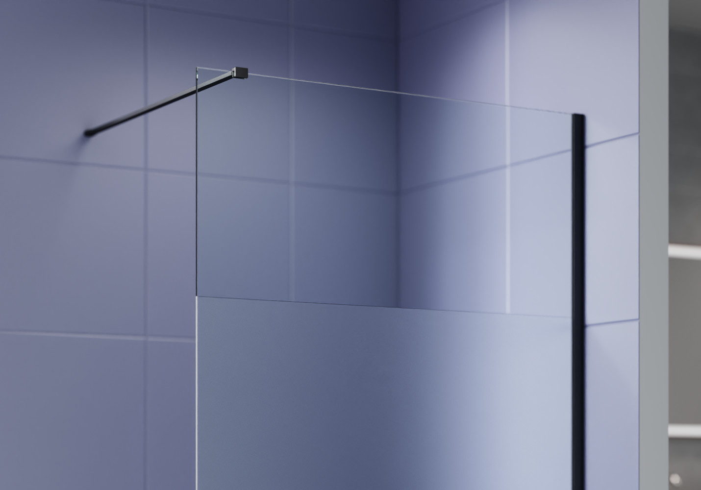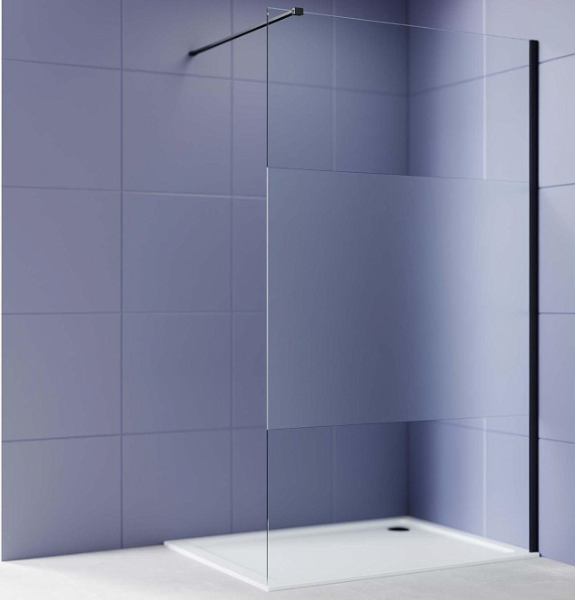 Душевая перегородка с держателем Акватек Walk In 120х200 см черный/прозрачное+матовое AQ.WI.120.3BL