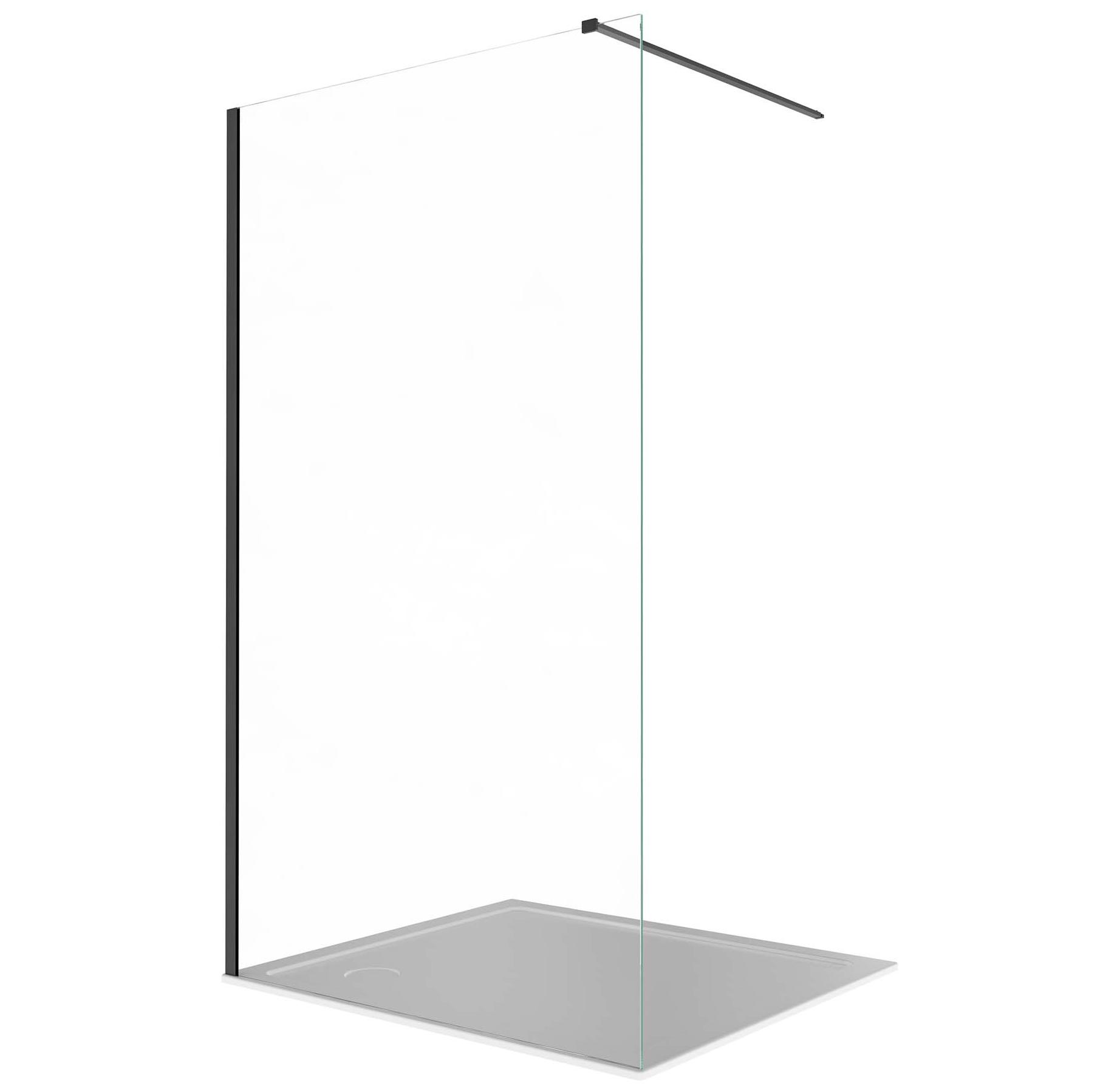 Душевая перегородка с держателем Акватек Walk In 140х200 см черный/прозрачное AQ.WI.140.1BL