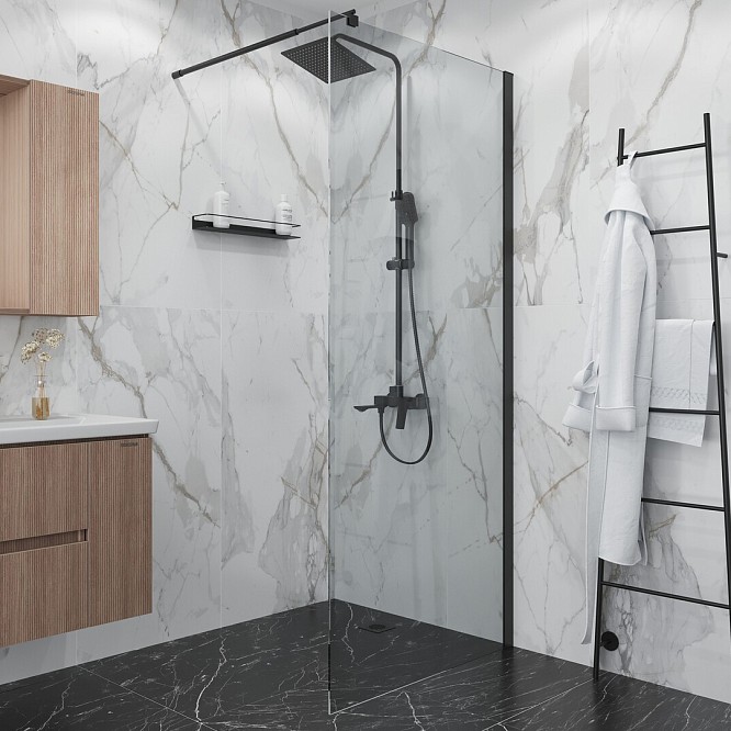 - Душевая перегородка Niagara Eco (70х190 см) черный матовый/прозрачное NG-551-70BLACK