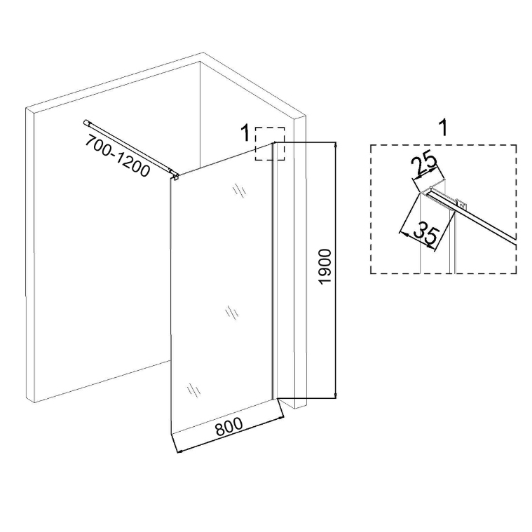Душевая перегородка Niagara Eco (80х190 см) черный/клетка NG-552-80BLACK