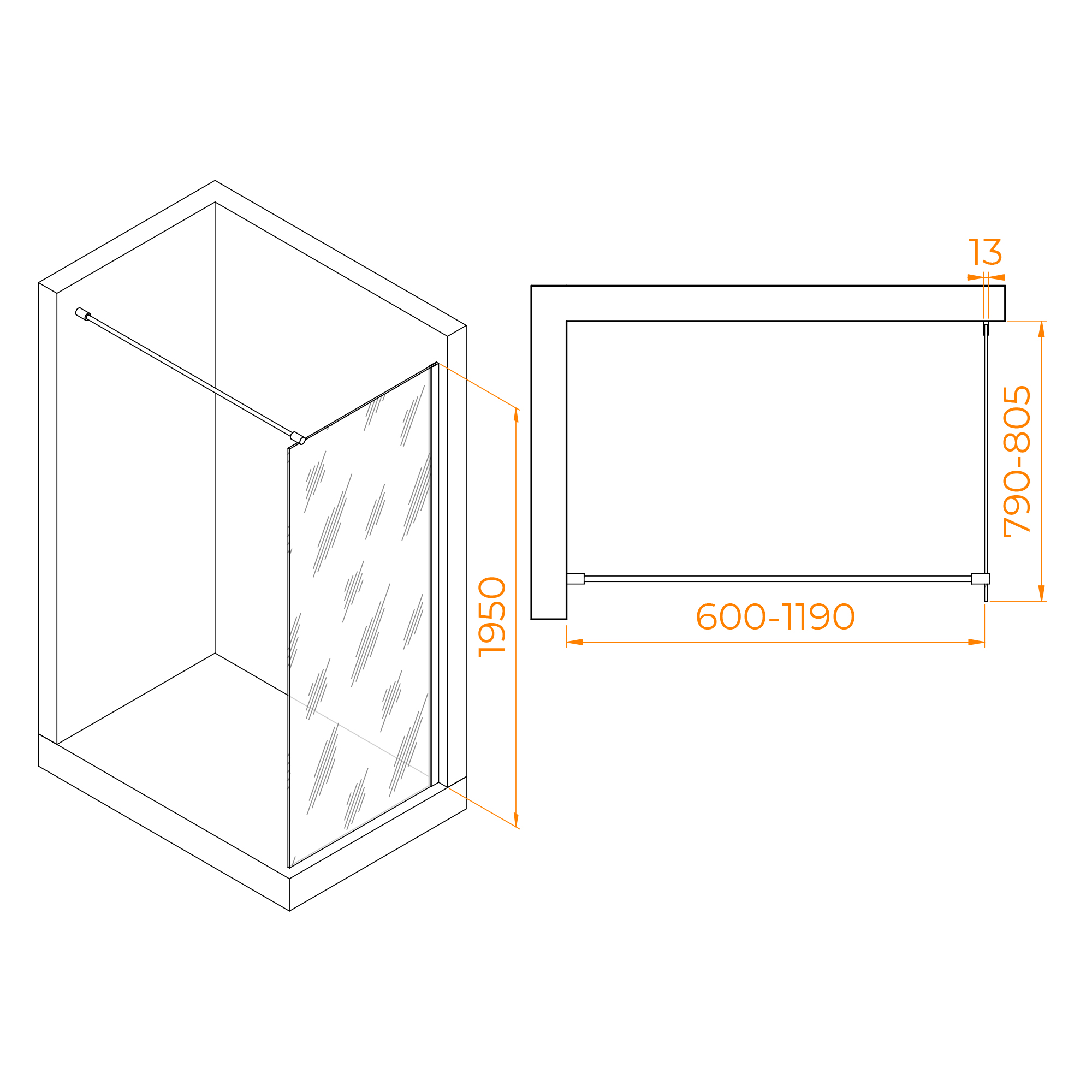 Высота перегородки для душа RGW WA-010 составляет 195 см, что обеспечивает комфортное использование для большинства людей и позволяет избежать протекания воды через край перегородки.