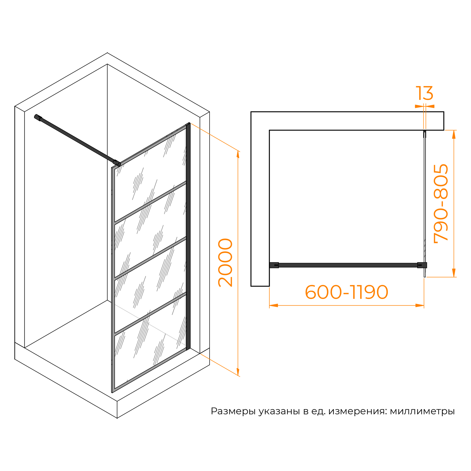 Душевая перегородка RGW Walk In WA-019B 80x200 см черный/прозрачное принт 351001980-84