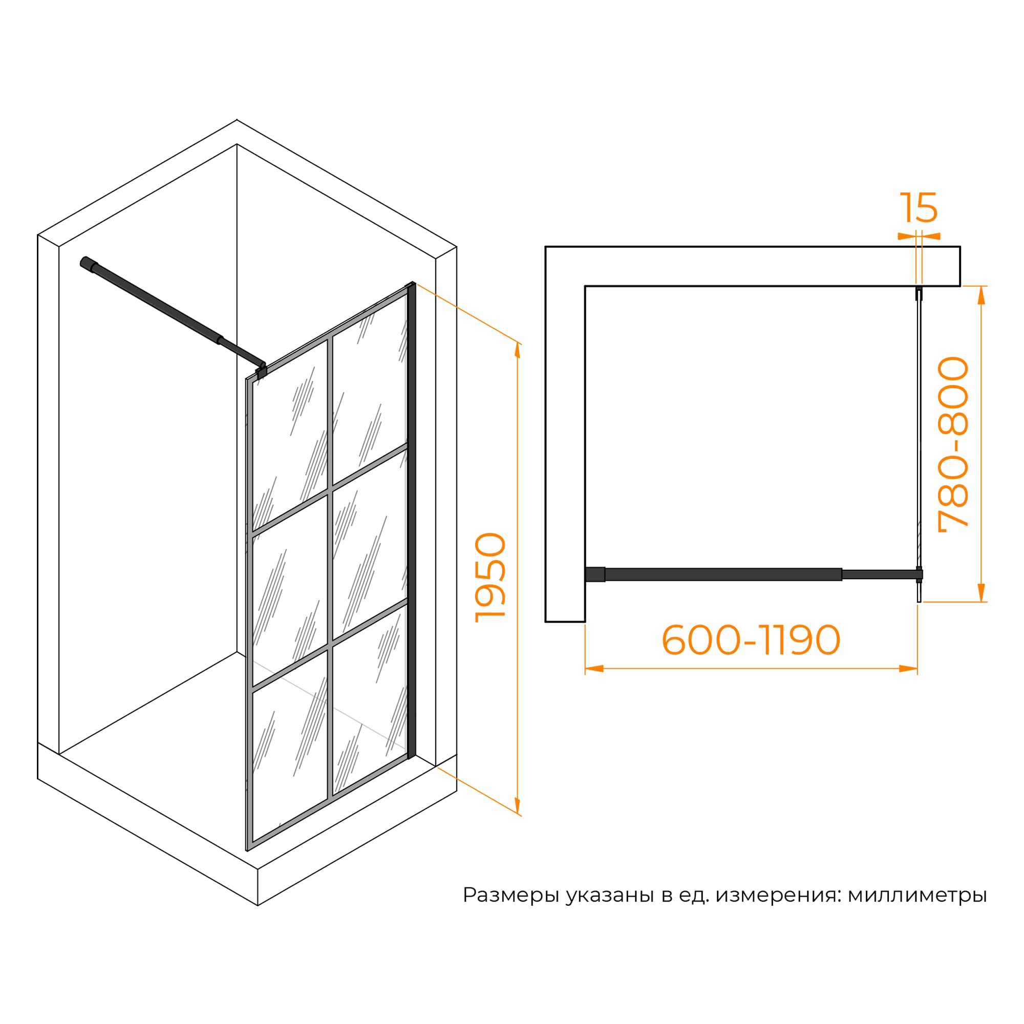 Душевая перегородка RGW Walk In WA-111B 80x195 см черный/прозрачное принт 411011108-84