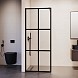 Толщина стекла составляет 8 мм, что обеспечивает высокую прочность и гарантирует безопасность использования. Исполнение стекла прозрачное с рисунком, который нанесён методом шелкографии. Пристенный профиль перегородки выполнен из качественного анодированного алюминия и имеет черный цвет, что отлично сочетается с большинством интерьеров.