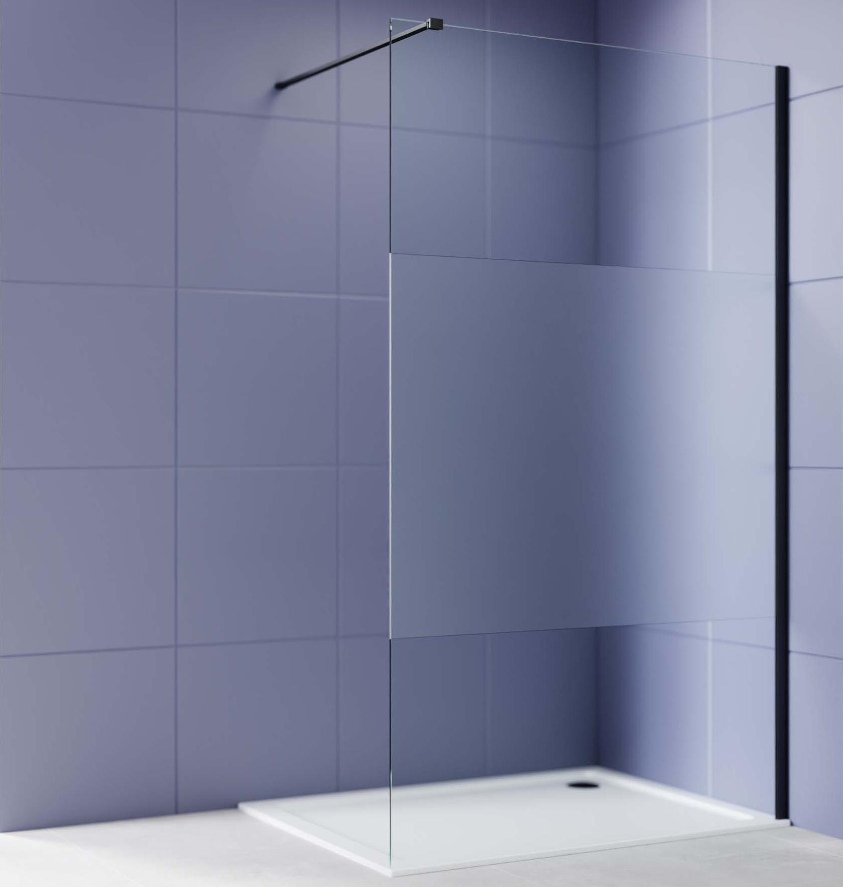 Душевая перегородка с держателем Акватек Walk In 90х200 см черный/прозрачное+матовое AQ.WI.090.3BL