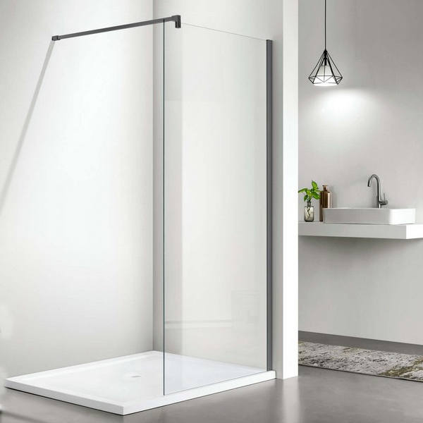 Душевая перегородка с держателем Акватек Walk In 90х200 см оружейная сталь/прозрачное AQ WIW 09020GM