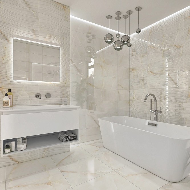 Коллекция Onyx создана быть уникальной. Изделия этой серии отличает сила, оригинальность, элегантность и уравновешенность. Дизайнеры Dogma как ювелир, искусно обрабатывающий драгоценные камни, воспроизвели в изделиях Onyx душу и волшебные свойства природы. Сложные сочетания прожилок, линий и разводов, различной интенсивности, подчеркнуты благодаря «яркому» глянцу. Декоративные элементы с геометрическими рельефами Triangolo, создают невероятный эффект игры цвета и тени, помогая избавиться от традиционной плоскостности настенной плитки. Использование плит Onda делают стены главным акцентом в интерьере, создавая чувственные творческие поверхности.