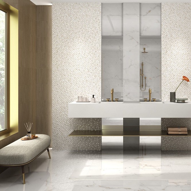 В основе новой коллекции Emigres Medina лежит тонкая игра изысканных фактур и благородных оттенков натурального камня. Ректифицированный напольный керамогранит представлен в пяти цветовых вариантах: от светлых молочных и бежевых оттенков (Bianco и Beige), до глубоких серых и коричневых цветов (Gris и Marron) и насыщенного черного тона (Negro). Благодаря лаппатированной поверхности и формату 60х60см керамогранит можно использовать для внутренней отделки любых помещений. Настенная линия вторит основной палитре коллекции. Гордостью серии служит имитирующая винтажную каменную мозаику плитка Aries и Garden с изящным растительным узором. Лаконичные базовые модули Vera, как и вся настенная плитка, выполнены в удобном размере 20х60 см.