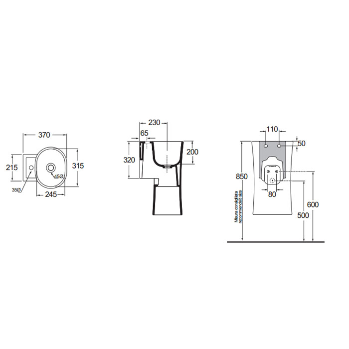 Раковина подвесная Azzurra Nativo 34х62 см LALS035370NM/(NAT200/1 bi)*1