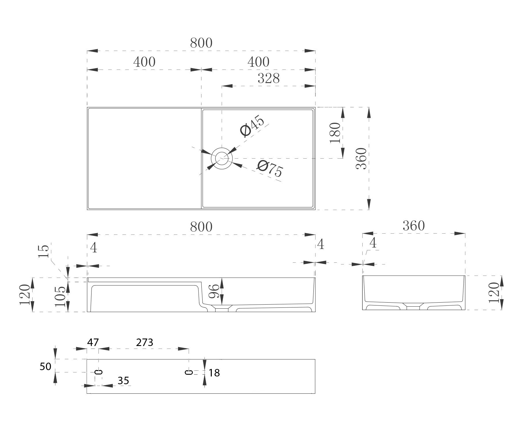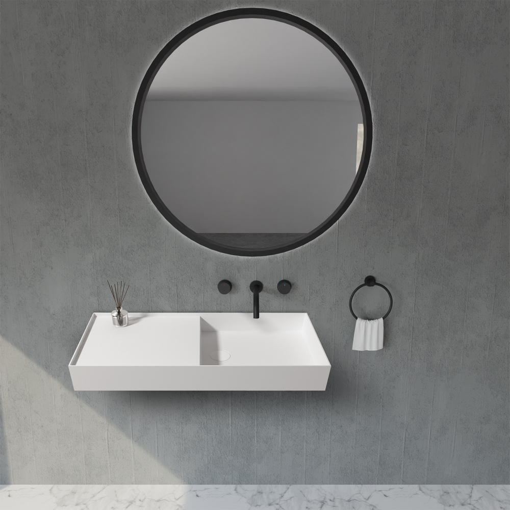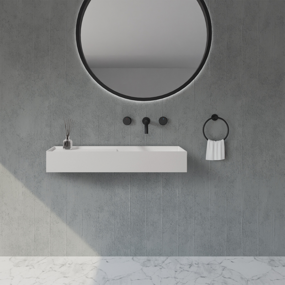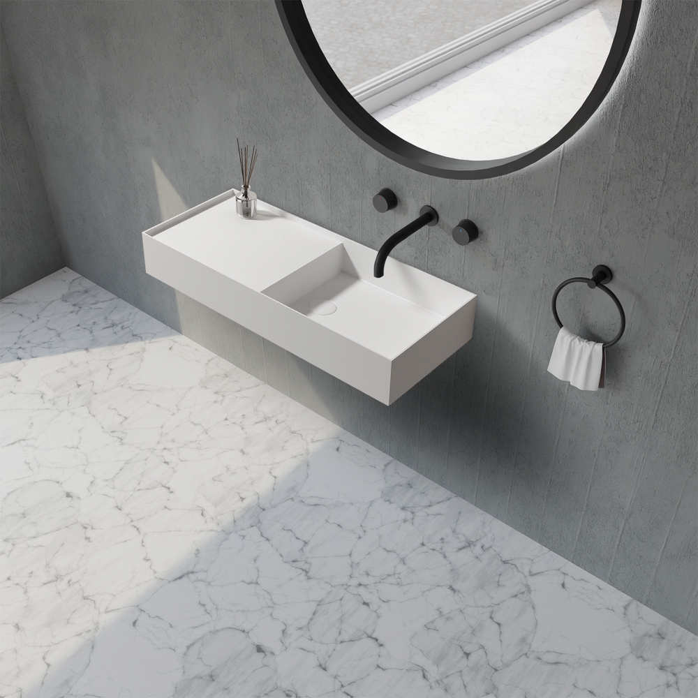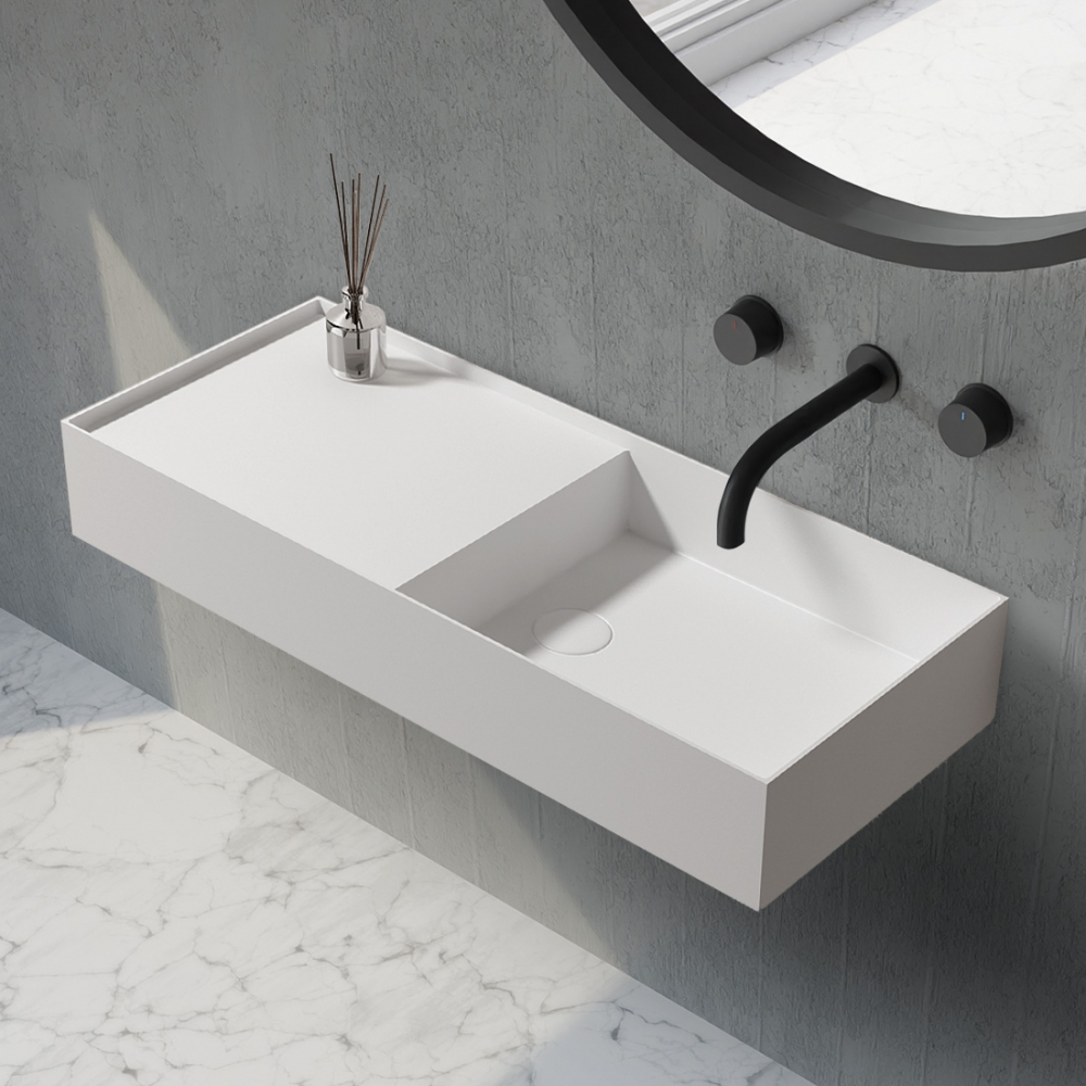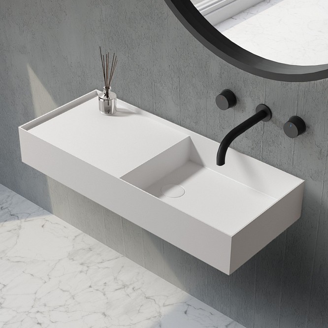 - Раковина подвесная иск камень Abber Stein 80х36 см белый матовый AS2648