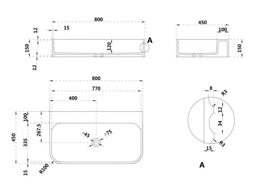 Раковина подвесная иск камень Abber Stein 80х45 см белый матовый AS2651-0.8