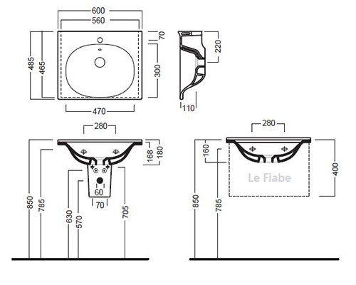 Раковина подвесная/встраиваемая Hatria Le Fiabe 60см Y1BR01