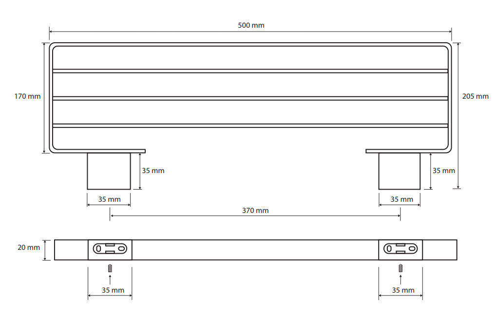 Размеры 500 x 205 x 20 мм