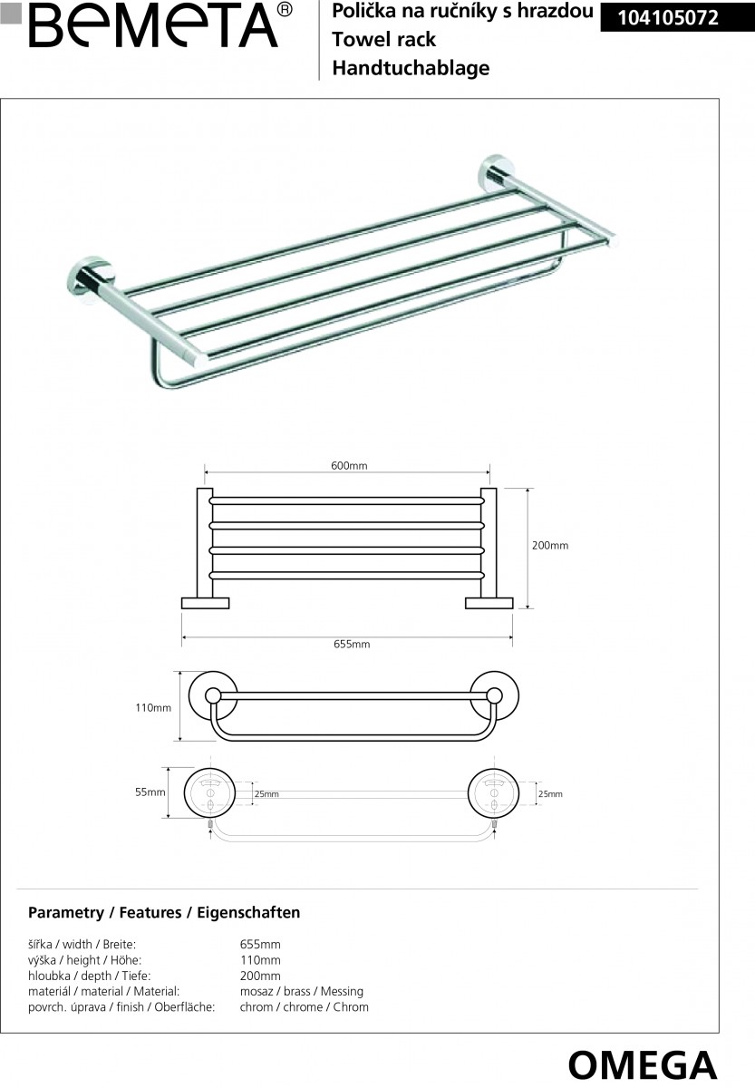 - Полка для полотенец с вешалкой Bemeta Omega 104105072 (65,5 см)