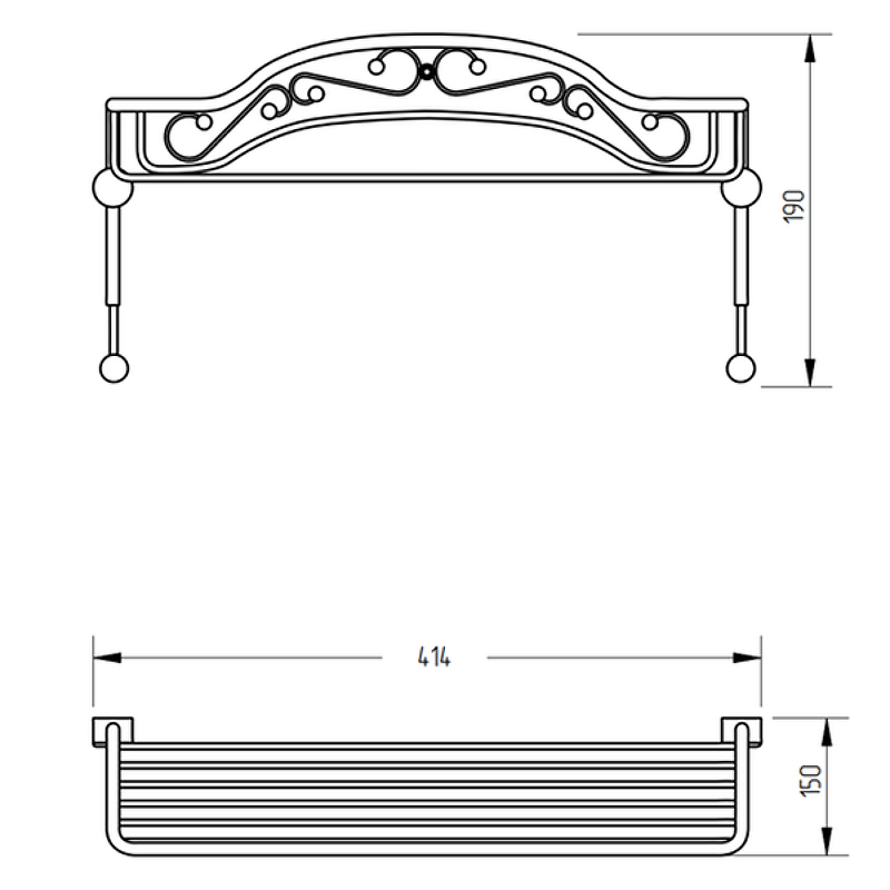 Полка-решетка большая одинарная с двумя крючками Migliore Complementi (41х19см) 22024 бронза