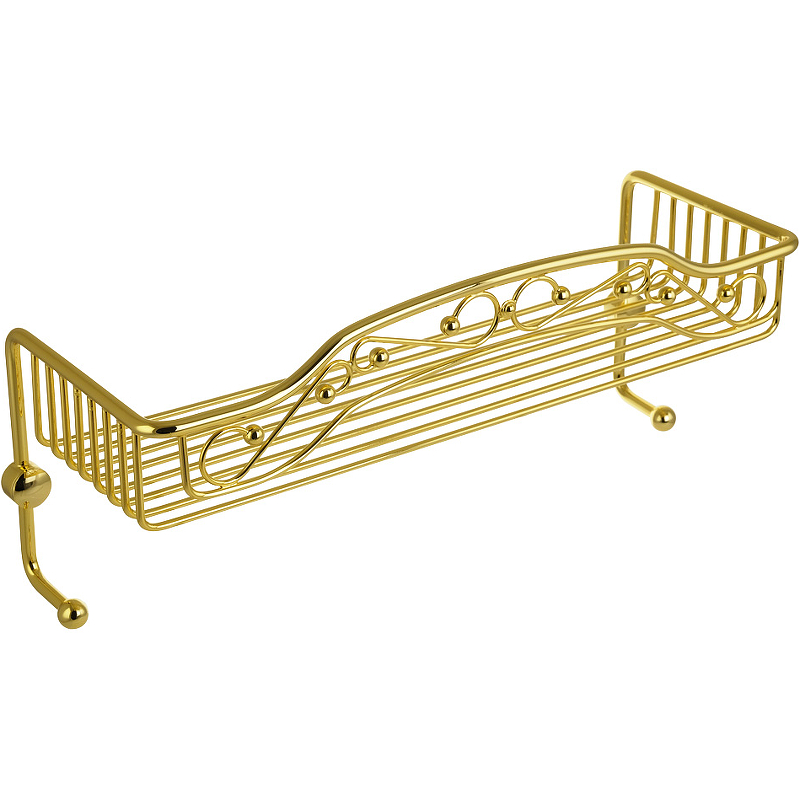 Полка-решетка большая одинарная с двумя крючками Migliore Complementi (41х19см) 22048 золото