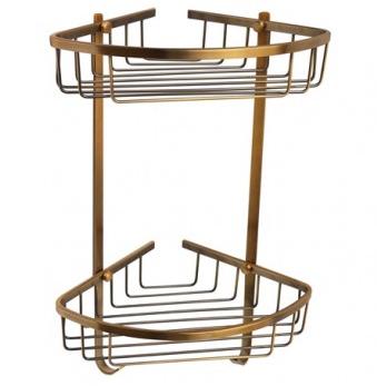 Полка-решетка двойная угловая Magliezza Fiore 80102-br (40х20 см) бронза