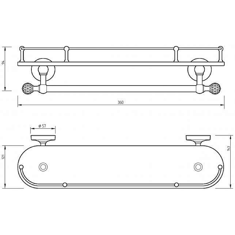 Полка с галереей и полотенцедержателем Migliore Amerida 36 см 16584 хром