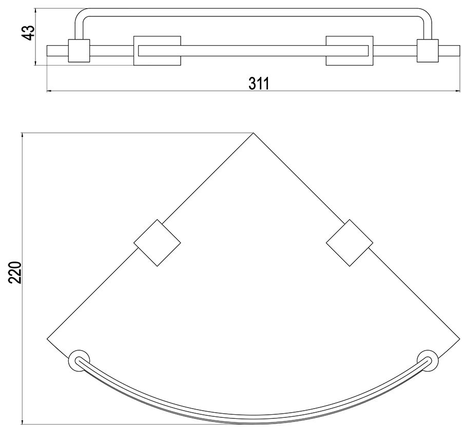 Полка стеклянная угловая Timo Selene 31х22 см хром 10073/00