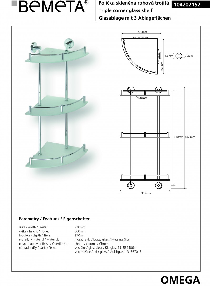 - Полка тройная угловая Bemeta Omega 104202152 (27х27 см)