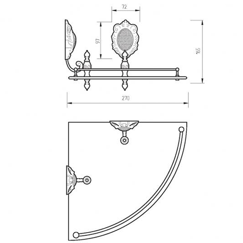 Полка угловая Migliore Cleopatra (27х27 см) 16638 бронза