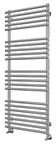 - Змеевидные. Данные изделия состоят из горизонтальных труб, последовательно соединенных отводами. Такая конфигурация обеспечивает высокую производительность, быструю сушку полотенец, поддержание комфортной температуры и оптимальной влажности в помещении.