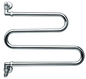 - Змеевидные. Данные изделия состоят из горизонтальных труб, последовательно соединенных отводами. Такая конфигурация обеспечивает высокую производительность, быструю сушку полотенец, поддержание комфортной температуры и оптимальной влажности в помещении.