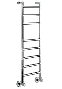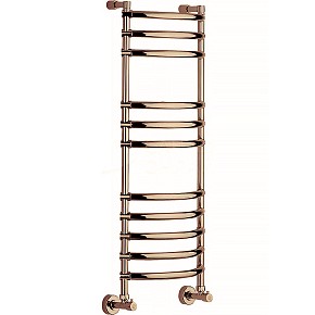 - В виде лесенки. Полотенцесушители этого типа состоят из двух параллельных вертикальных труб, соединенных горизонтальными перемычками меньшего диаметра. Это не только удобно для размещения полотенец, но и создает эстетически привлекательный элемент в дизайне ванной комнаты.