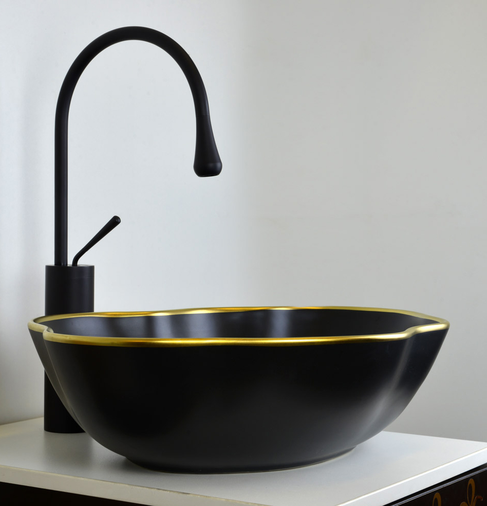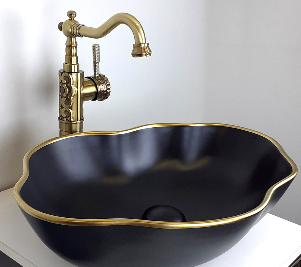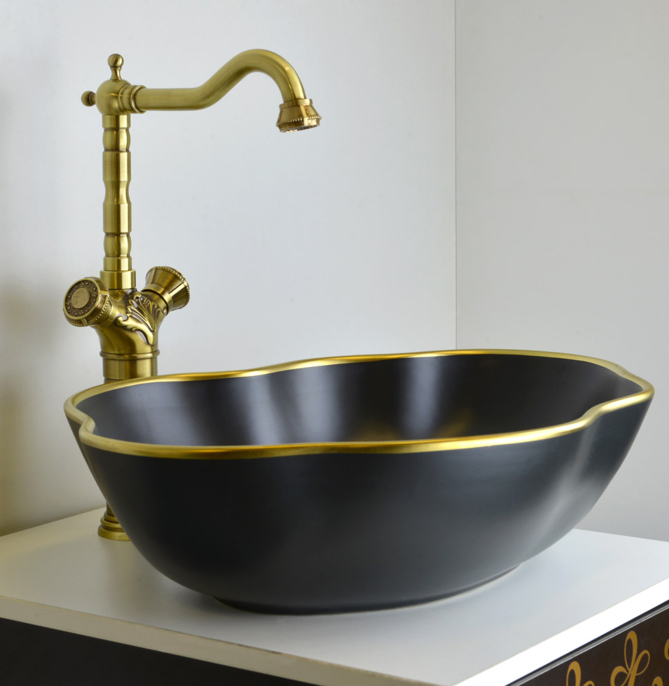 Накладная раковина Bronze de Luxe Блэк Орхид 50х38 см черный матовый/ золото 1395